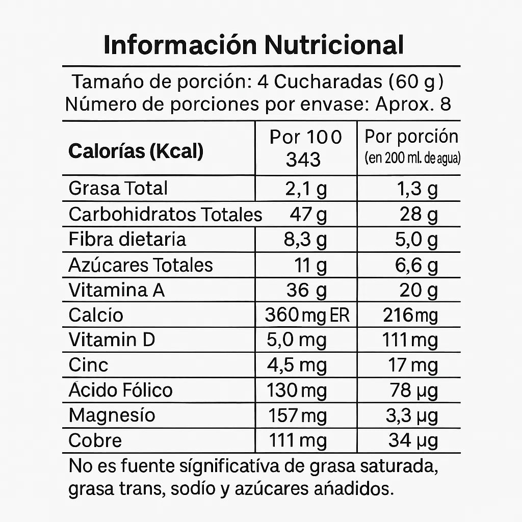 - Presentación: Polvo en envase de 500 g.
